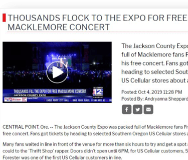 Free community concerts to celebrate corporate milestones (i.e., 30 yrs in Cedar Rapids)